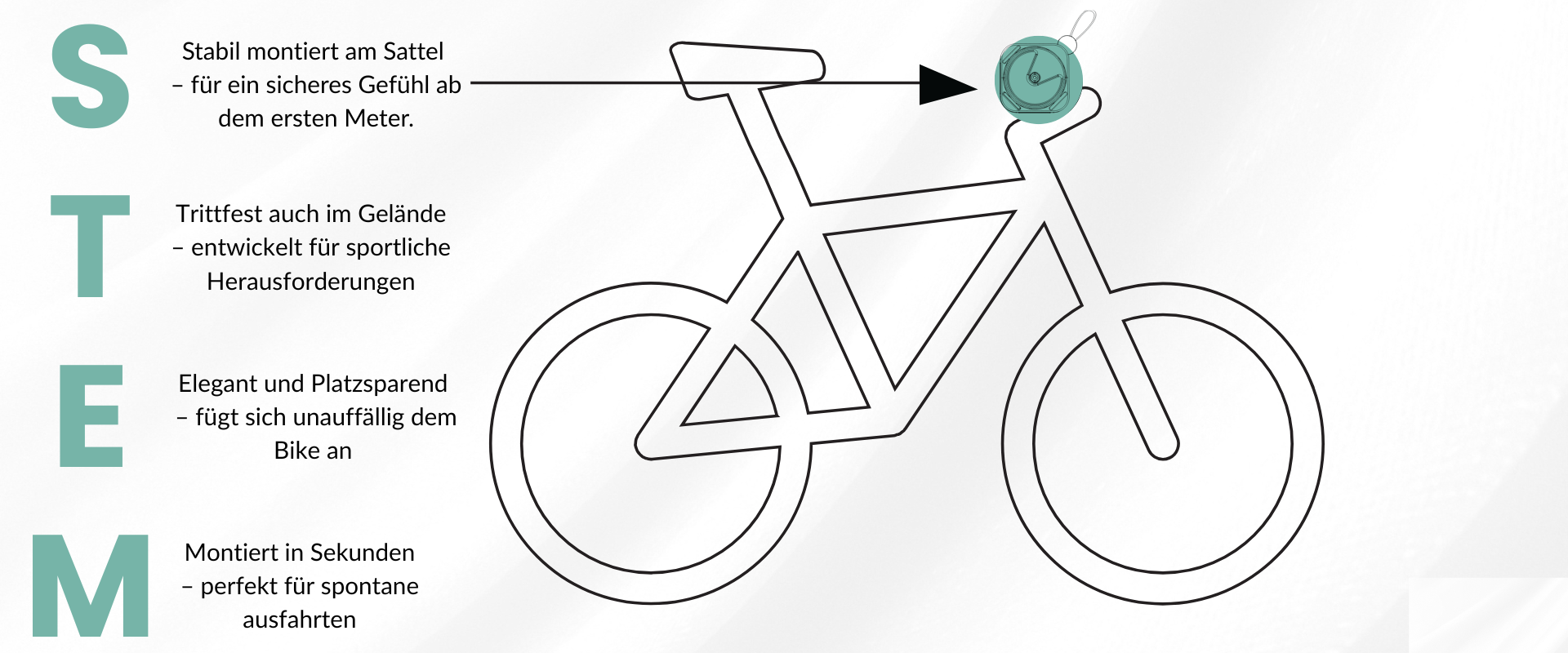 - Nur an stabilen Stellen/Strukturen des Fahrrads befestigen (z. B. Sattelstütze).